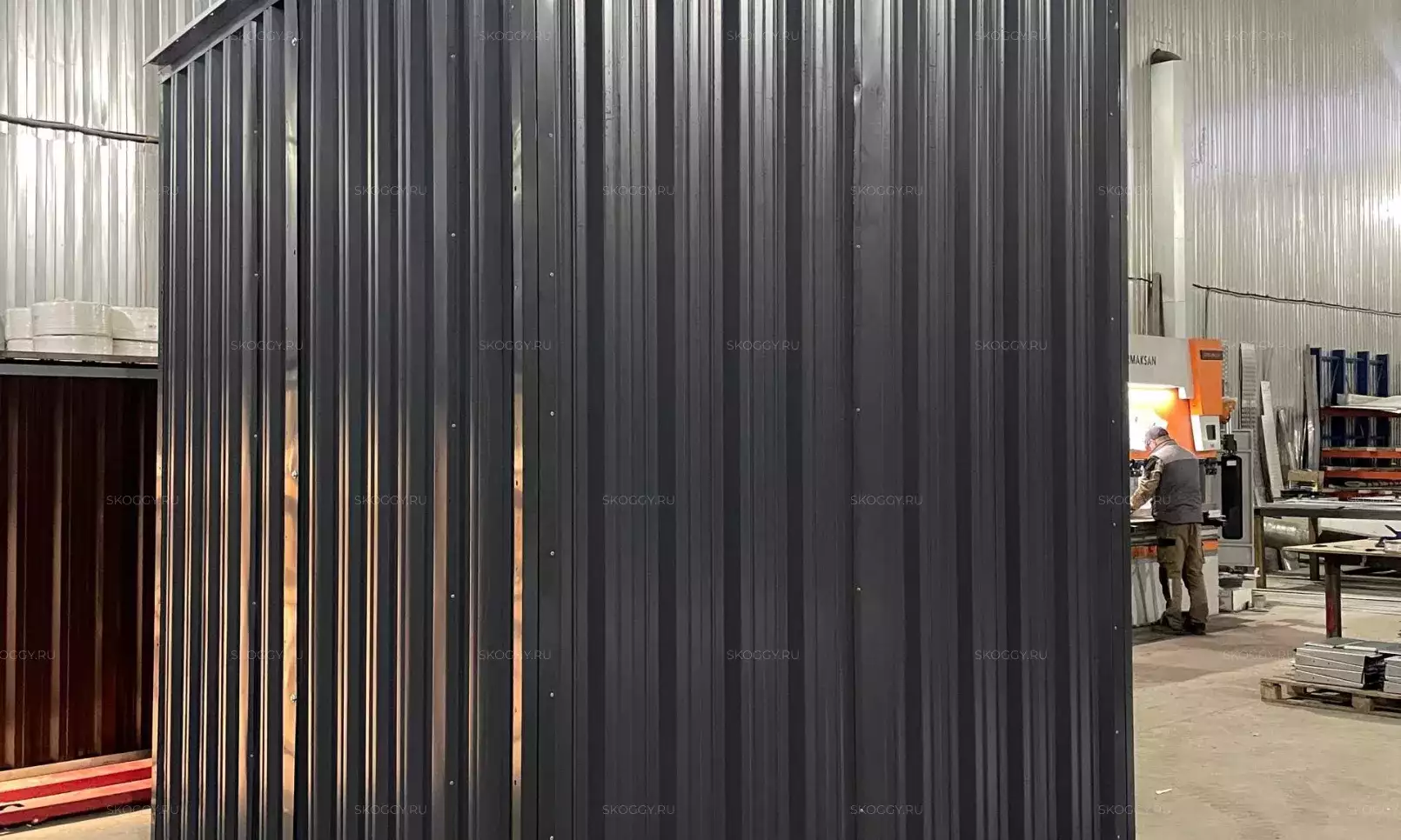 Изготовили конструкцию в цинковом цвете с двускатной крышей размером 4,22 х 6 х 2,45 м. Заказчик попросил привезти блок контейнер во время его отпуска. Надо значит надо, сделали!