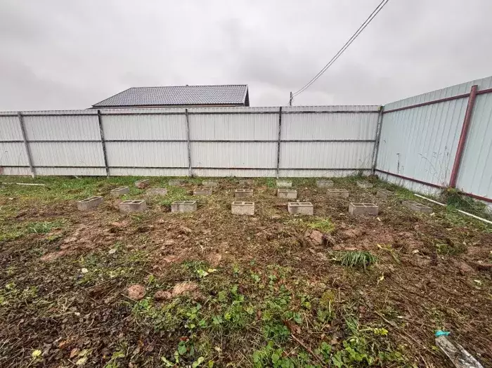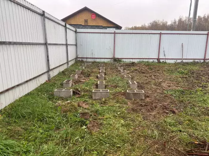Площадку под строение заказчик подготавливал самостоятельно. Были установлены бетонные блоки по рекомендованной нами схеме расстановки точек опор.