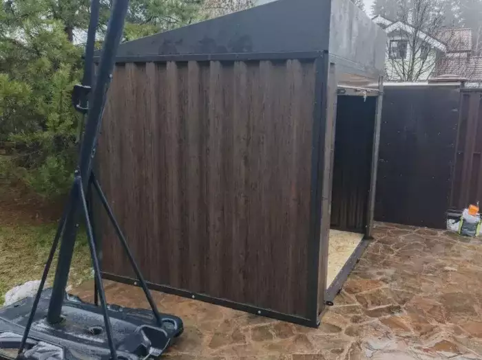 Заказчику запросил хозблок для садовой техники и инвентаря. Нашей продукцией покупатель заинтересовался еще зимой, мы предлагали ему участие в акции с сертификатами. Он долго размышлял перед покупкой, и так как не нашел альтернативы по визуальному исполнению конструкции, вернулся к нам. Согласовали комфортные условия по доставке и приступили к изготовлению нового блок контейнера.
