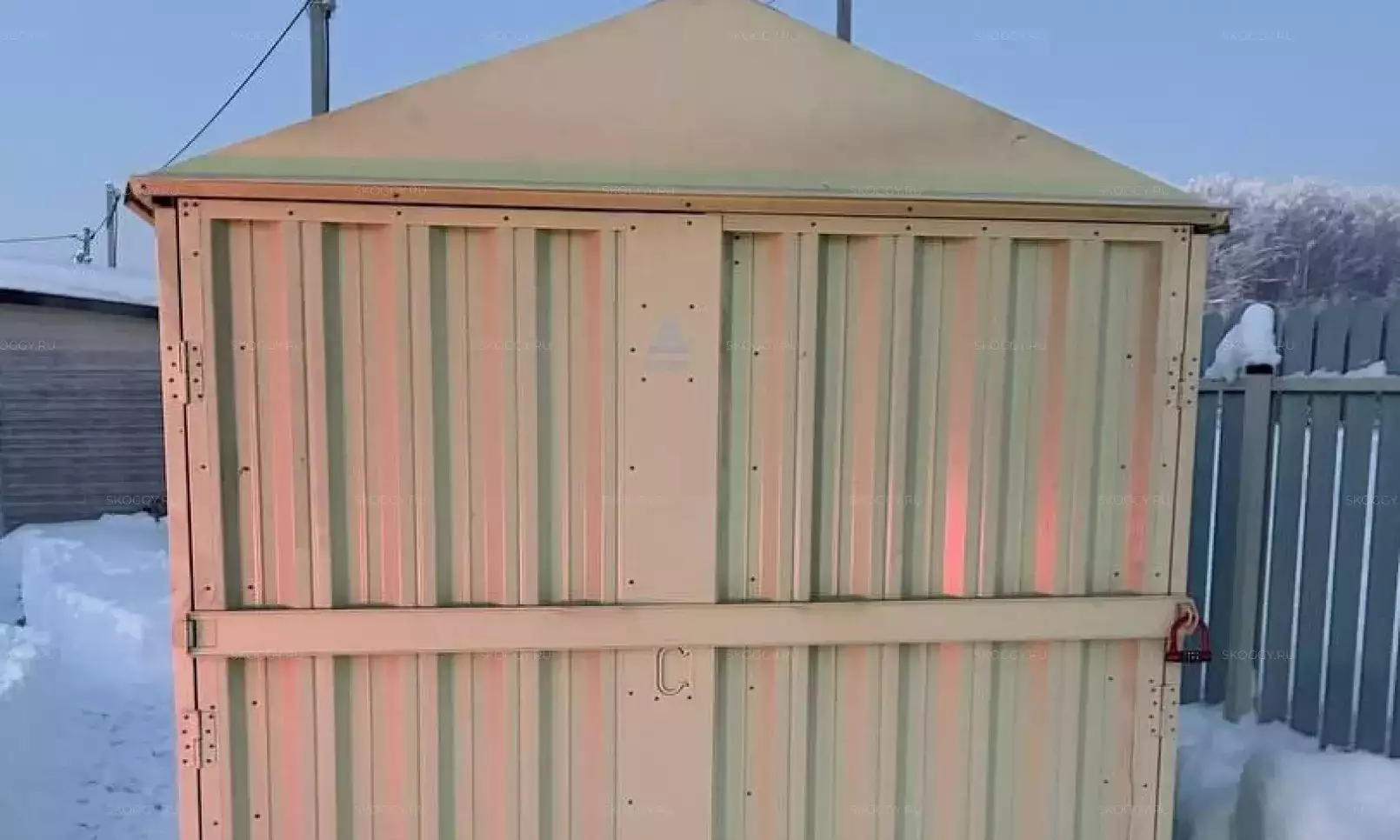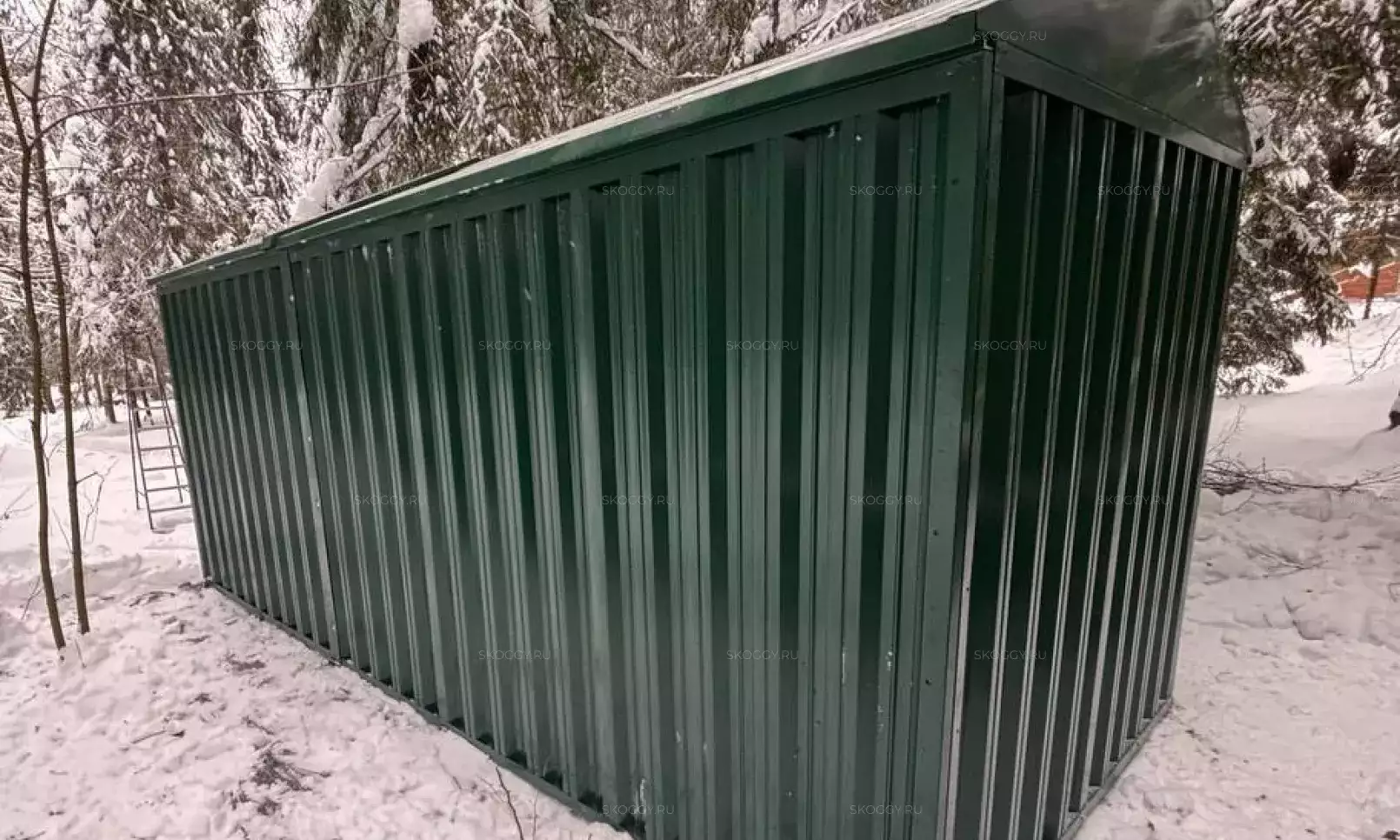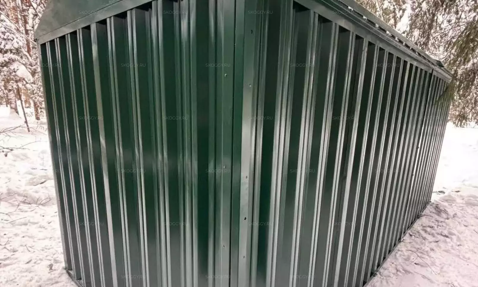 Нами была изготовлена стандартная 3-метровая конструкция с двускатной крышей и торцевой воротной группой в популярнейшем шоколадно-коричневом цвете RAL 8017.