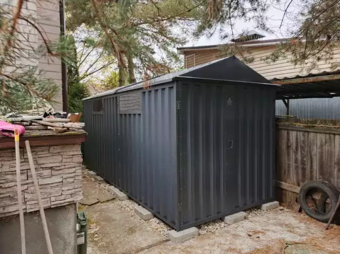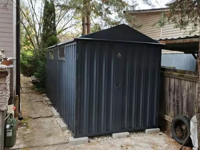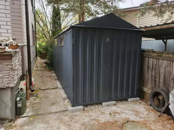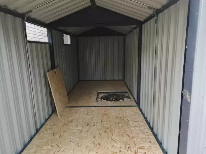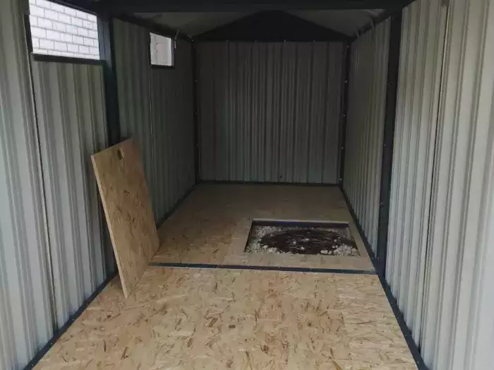 Дополнительно хозблок оборудовали антивандальным засовом в шоколадно-коричневом цвете RAL 8017 для обеспечения максимальной надежности и сохранности имущества.