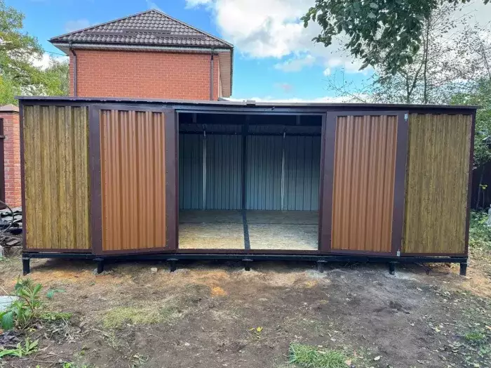В конце декабря к нам обратился покупатель из Ленинградской области с задачей хранения квадроцикла. Изначально рассматривался блок контейнер длиной 4 м. В процессе общения решили, что практичнее будет приобрести 5 м гараж + прямой стеллаж с полками и пандусы для удобства въезда. В собранном виде гараж не рискнули отправлять и согласовали доставку в разобранном виде с последующей самостоятельной сборкой.