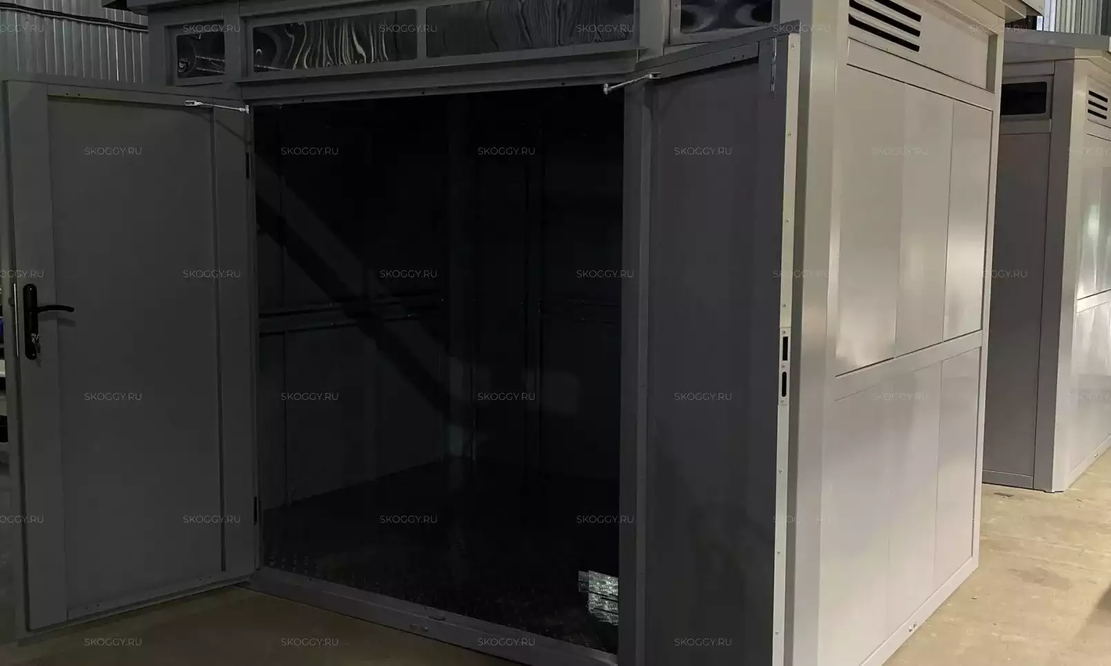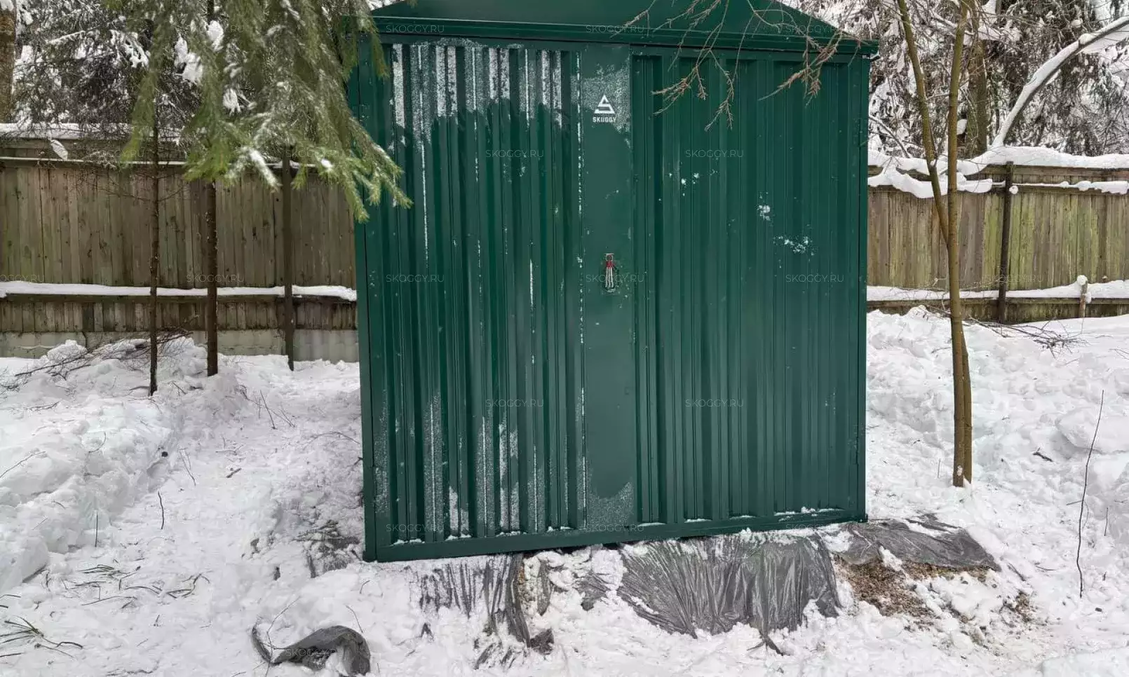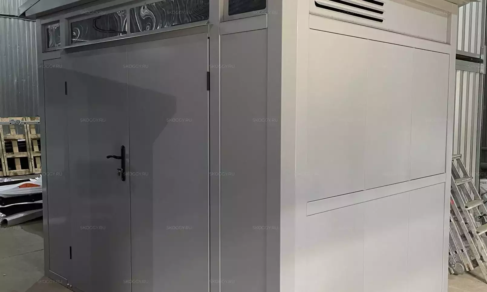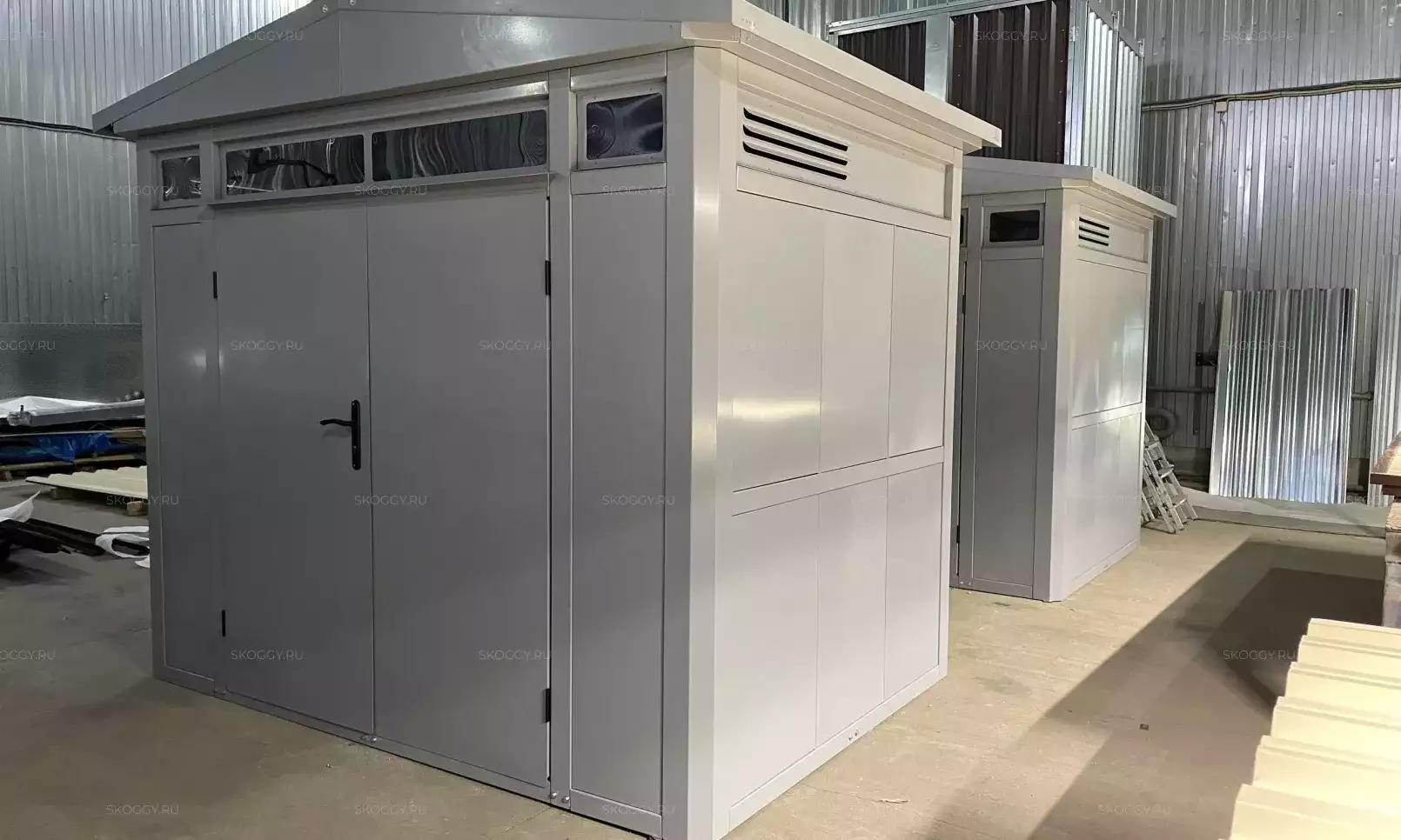 Проект: 3-метровый секционный хозблок для хранения садовой техники и инвентаря в комбинированной расцветке.