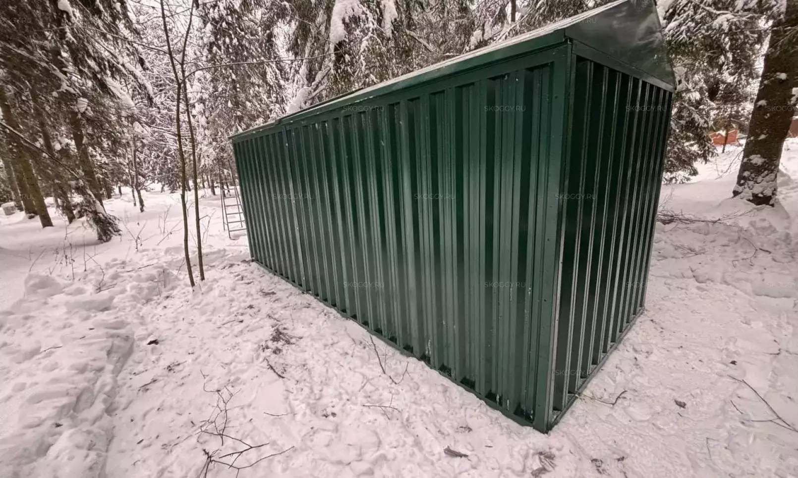 Доставляли хозблок на участок заказчика манипулятором в собранном виде, так как не было никаких препятствий для разгрузки транспорта.