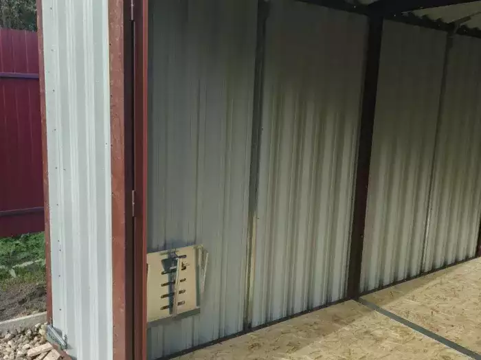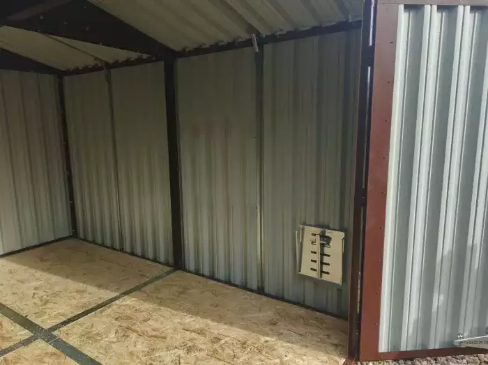 Дополнительно хозблок оборудовали прямым стеллажом с двумя полками.