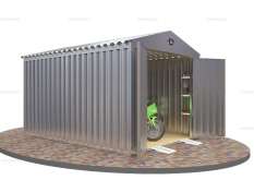 От выбора изделия напрямую зависит, сколько стоит гараж металлический. Использование металла снижает вес строения, неразрывная связь с землёй отсутствует (такие гаражи и относятся не к капитальным, а к быстровозводимым объектам). Благодаря этим особенностям установку можно выполнять без фундамента на ровную и твердую поверхность (асфальтированную или мощеную тротуарной плиткой) без предварительного согласования и получения разрешений. То есть гараж из металлоконструкций способствует экономии времени и денег, причем благодаря порошковому покрытию сооружение ничем не уступает кирпичному гаражу. Оно не подвержено коррозионному разрушению, отличается устойчивостью к короблению, атакам грызунов, насекомых и микроорганизмов. Благодаря фактурному окрашиванию и брендированию гараж из металлоконструкций выглядит привлекательнее капитальной постройки.
